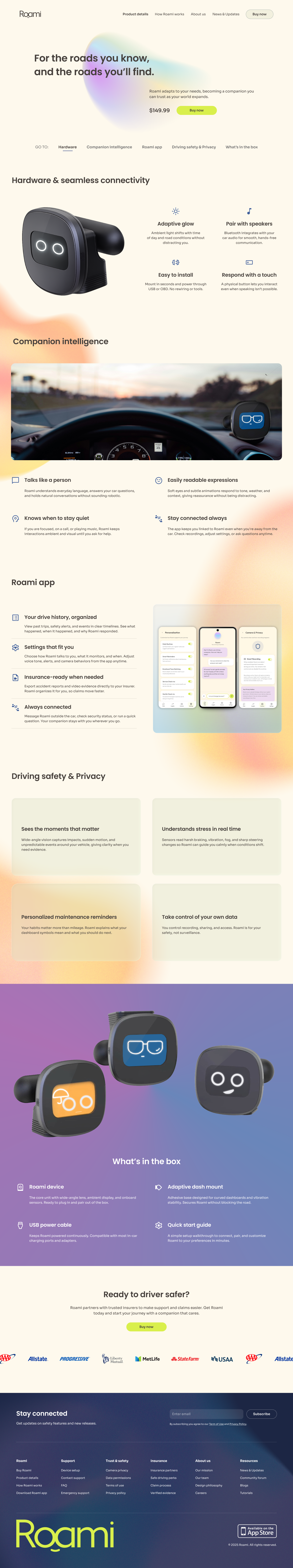 Roami AI In-Car Companion Brand & Product Site